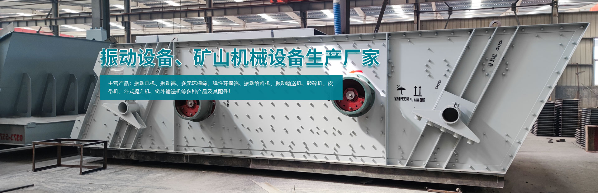 - 主要產品有系列振動電機、振動篩、多元環保篩、彈性環保篩、振動給料機、振動輸送機、破碎機、皮帶機、斗式提升機、鏈斗輸送機等多種產品